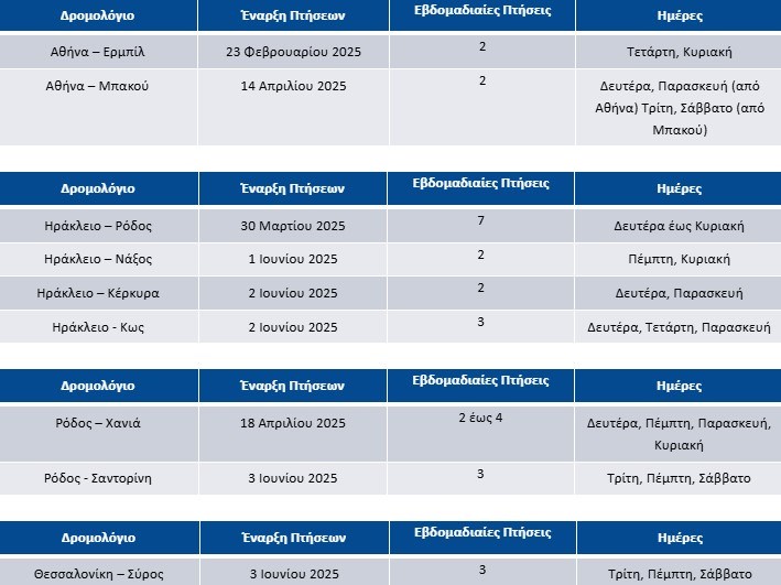 Σημειώνεται ότι οι πτήσεις είναι ήδη διαθέσιμες στα συστήματα κρατήσεων και οι επιβάτες μπορούν να προβούν στις κρατήσεις των εισιτηρίων τους στο aegeanair.com ή μέσω ταξιδιωτικών πρακτόρων.